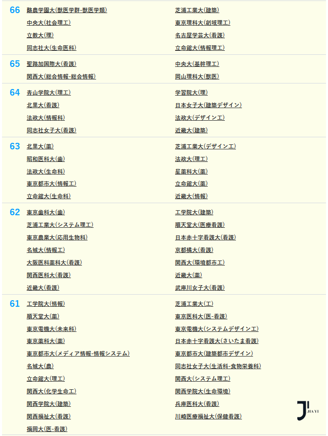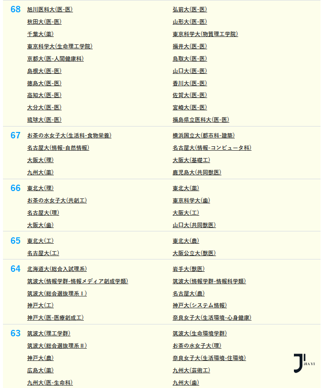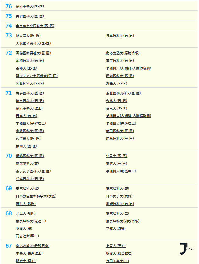 医学部的偏差值依然保持领先,紧随其后的是就业率极高的工科专业,显示出学术实力与就业前景的双重优势。