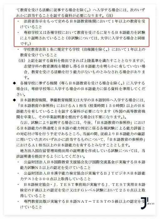 须在“告示校”日本语学校接受1年以上正规教育,或满足与大学入学相同的日语能力标准。
