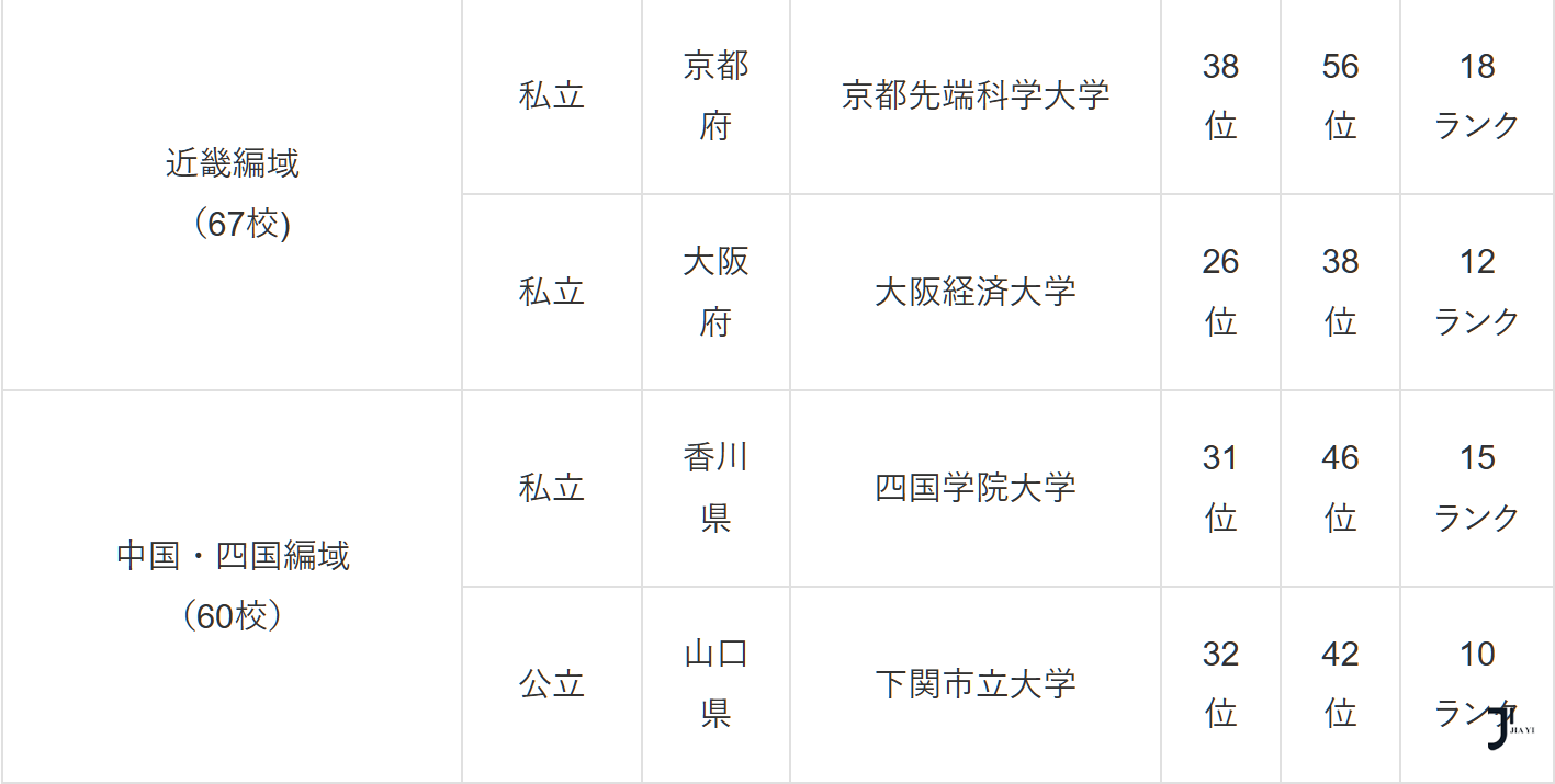 中国・四国編(60校中の順位)